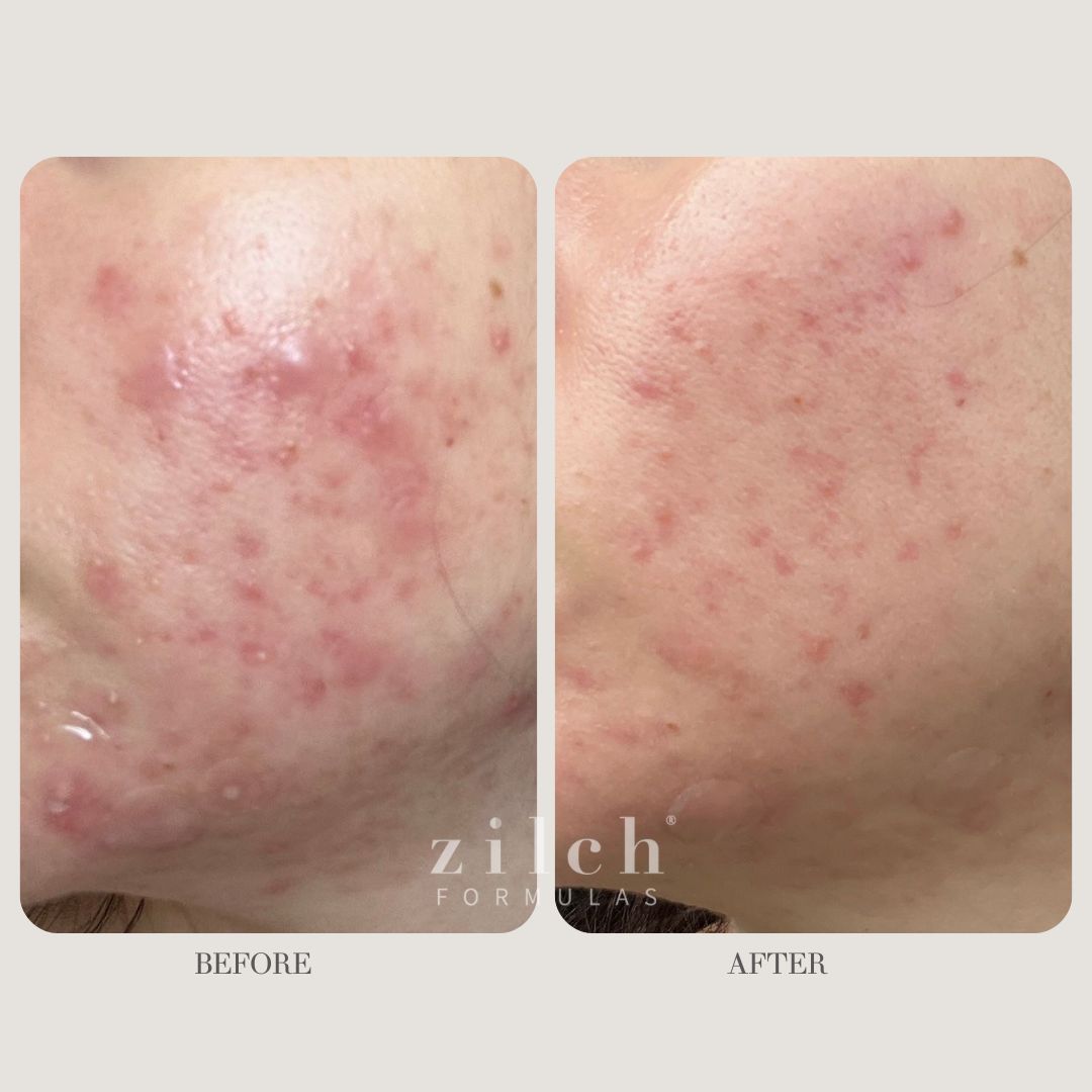 "I had acne on my cheeks and all around my mouth and jawline. Nothing I had tried for the past 3 years had worked. I found Zilch on inst...agram and did a lot of research and saw their amazing results and decided to try them for myself. Not even a week later and my skin was already clearing up. Fast forward a few weeks and my skin was less red, less inflamed and I had no new acne appearing. Just over a month and my acne had completely cleared! With no side effects and after 4 years of painful acne these were the only things that worked for me! They are a little expensive but they work and not only did they clear my skin but they helped my body too."