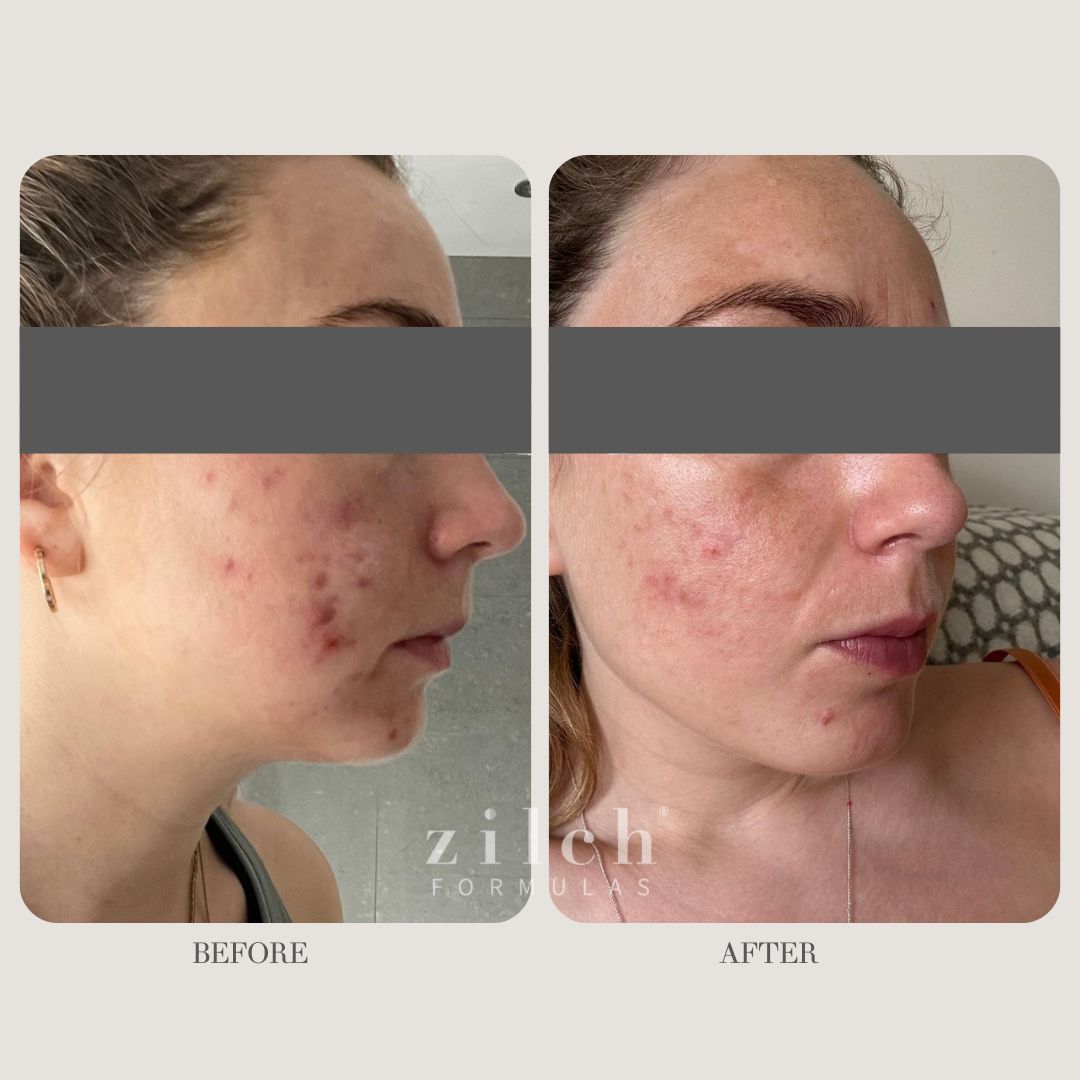 "I had acne on my cheeks and all around my mouth and jawline. Nothing I had tried for the past 3 years had worked. I found Zilch on inst...agram and did a lot of research and saw their amazing results and decided to try them for myself. Not even a week later and my skin was already clearing up. Fast forward a few weeks and my skin was less red, less inflamed and I had no new acne appearing. Just over a month and my acne had completely cleared! With no side effects and after 4 years of painful acne these were the only things that worked for me! They are a little expensive but they work and not only did they clear my skin but they helped my body too."