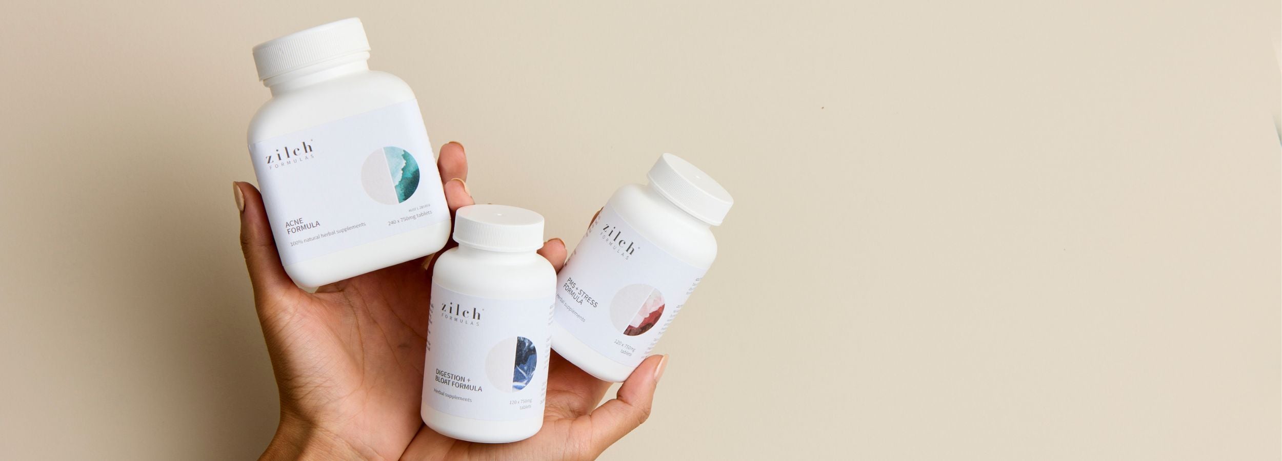 - Zilch PMS + Stress Formula, our hormone regulating and calming formulation that reduces symptoms of PMS, anxiety and stress.
